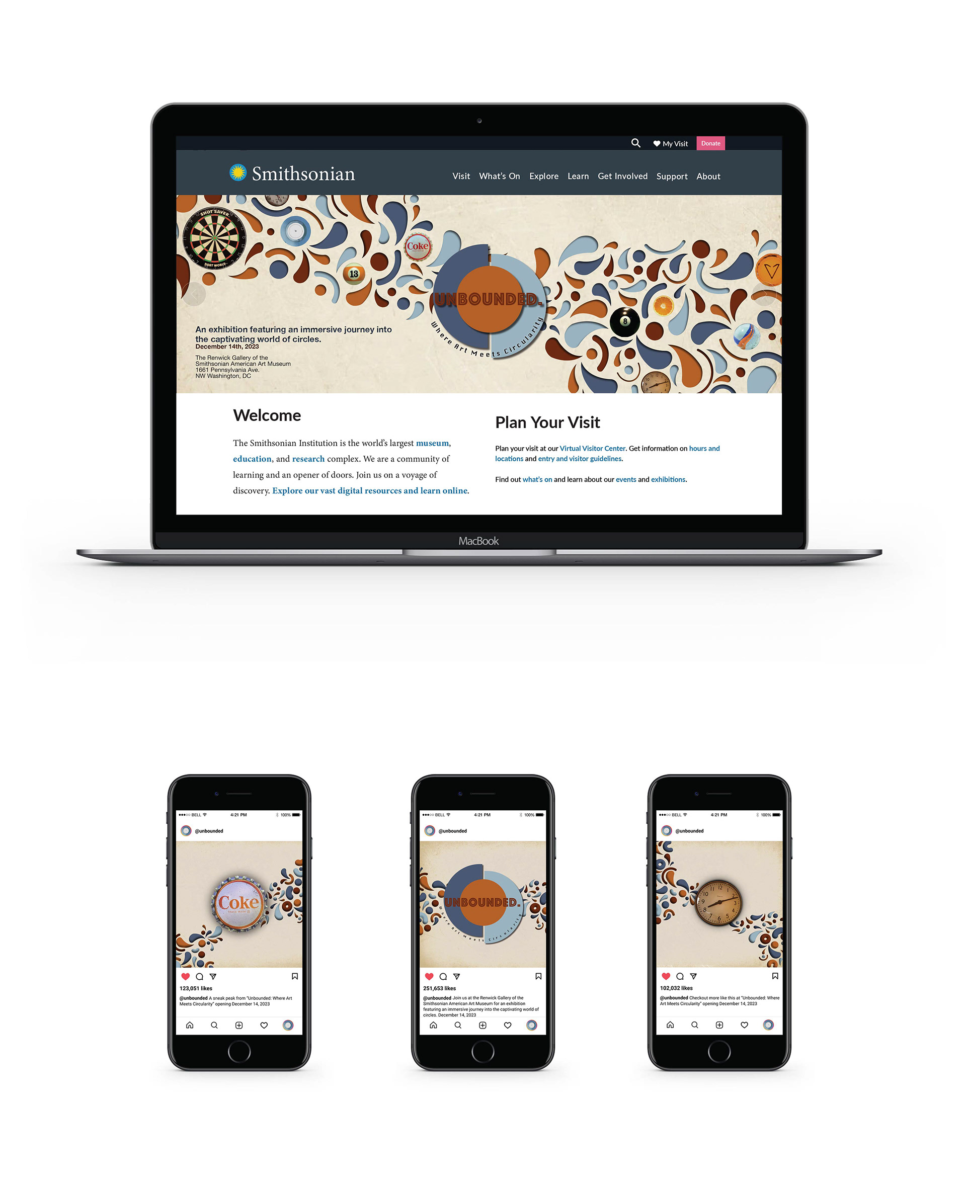 "Unbounded" is a conceptual exhibition identity and mock collection designed for a Smithsonian Museum context. For this project, I was tasked with creating an original collection and developing a full suite of marketing materials, including a poster, social media assets, a brochure, and a webpage mockup. All imagery and written content were created by me, allowing for complete creative control from concept to execution.